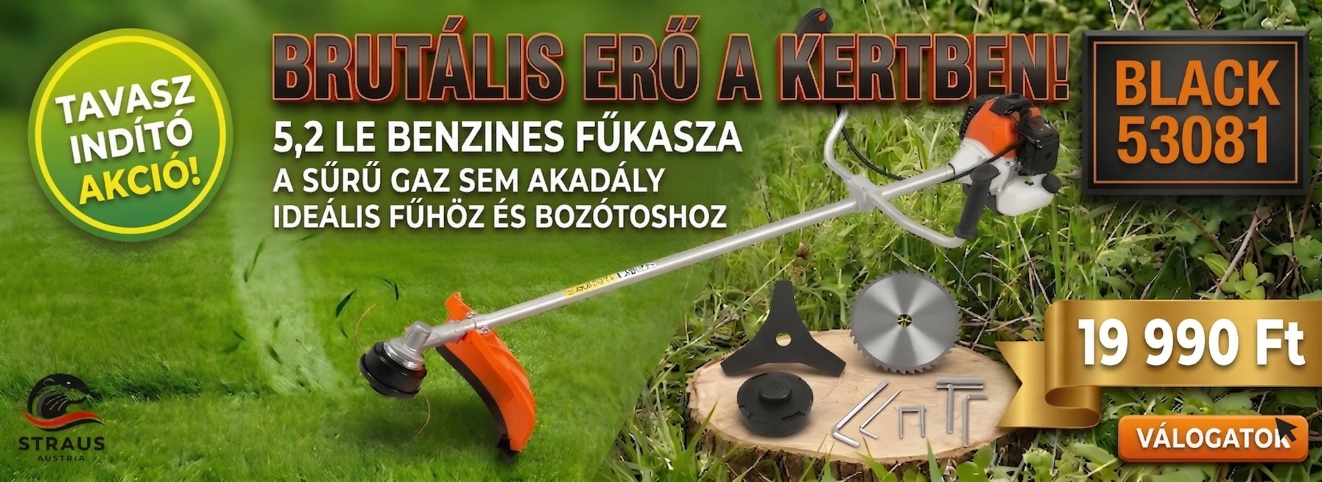 HAYAMI Nagy teljesítményű benzines fűkasza 62ccm HA-3001