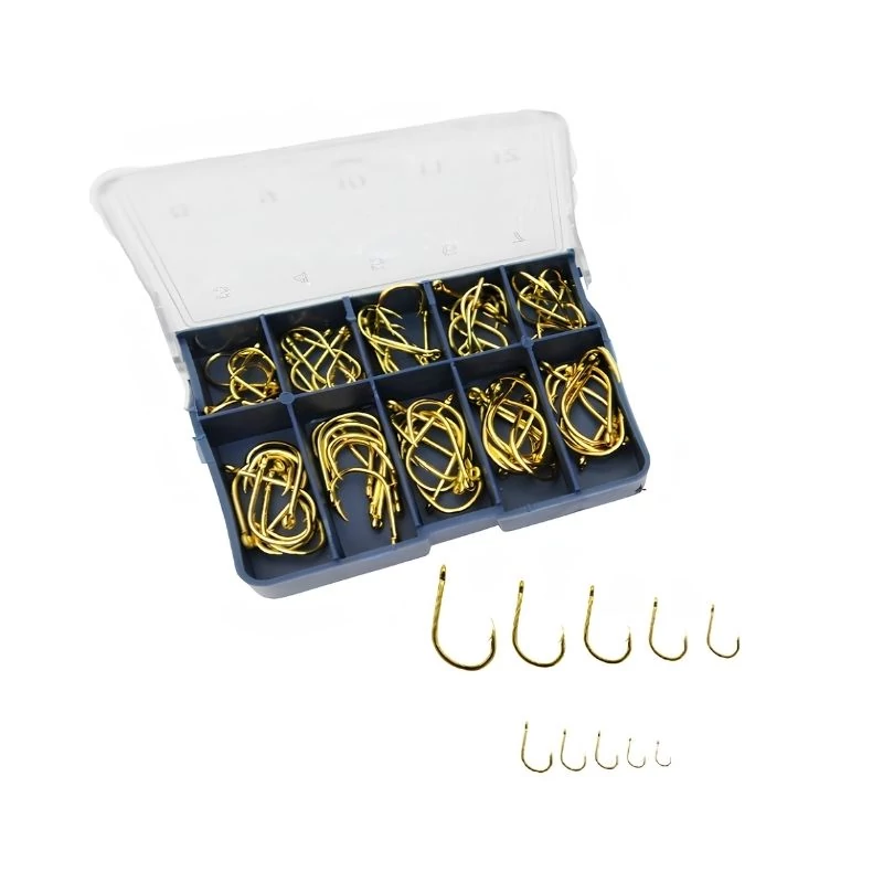 Praktikus és sokoldalú horogkészlet, amely ideális választás mind kezdő, mind haladó horgászok számára. A csomag 50 darab arany színű, füles horgot tartalmaz 10 különböző méretben, így mindig megtalálod a megfelelő típust az adott halfajhoz és horgászati módszerhez.