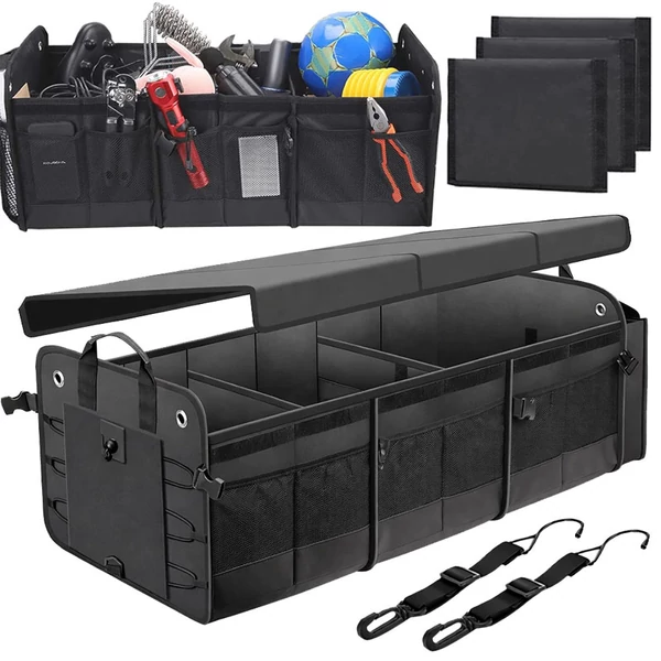 Ez a praktikus, összecsukható autós csomagtartó rendszerező táska segít abban, hogy az autód csomagtere mindig rendezett és átlátható maradjon. Ideális választás mindennapi használatra, bevásárláshoz, utazáshoz vagy szerszámok és autós kiegészítők tárolására.