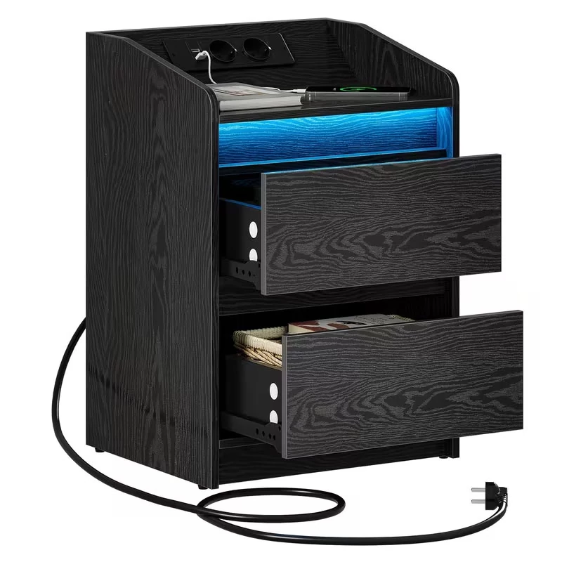 Éjjeliszekrények LED lámpákkal, töltődokkos kivitel fekete BJ6278305-F
