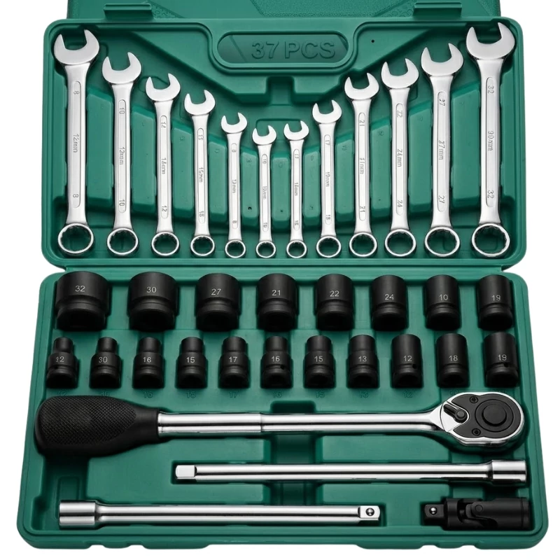 Az EXTRA German Style EX-8273 egy professzionális összeállítású, 37 darabból álló szerszámkészlet, amelyet úgy terveztek, hogy a műhelyi és ház körüli szerelési munkák jelentős részét lefedje. A készlet alapját az 1/2 collos meghajtású dugókulcs-rendszer adja, amelyet egy teljes sorozat csillag-villáskulcs egészít ki. A szerszámok strapabíró anyagból készültek, biztosítva a hosszú élettartamot és a megbízható erőátvitelt a legnehezebb feladatok során is.