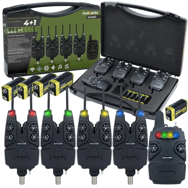 A Hokkaido W12062 kapásjelző szett egy fejlett és sokoldalú kapásfigyelő rendszer, amely ideális választás a profi horgászok számára. A szett 4 db kapásjelzőt és 1 db központi egységet (centralka) tartalmaz, valamint a RGB fényhatások és BUS BAR kapcsolat révén a legmodernebb technológiát kínálja a kapások figyelésére.