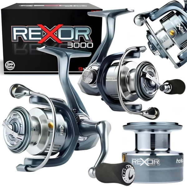 A Rexor sorozat kiemelkedő jellemzője a kettős alumínium dobos kivitel: mind a fődob, mind a csomagban található pótdob könnyített fémből készült, ami ritka és értékes extra ebben a kategóriában. A precíz elsőfékrendszer lehetővé teszi a fékerő finom adagolását, az ergonomikus hajtókar pedig kényelmes fogást biztosít a hosszú horgásznapok során is.
