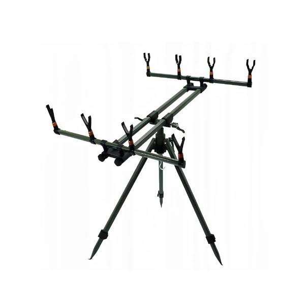 Stabil és sokoldalúan állítható rod pod állvány, amely ideális választás több bot egyidejű használatához. A tripod kialakítás kiváló stabilitást biztosít különböző terepviszonyok között, így tökéletes megoldás feeder és bojlis horgászathoz egyaránt.