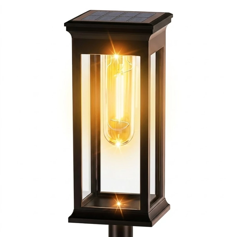 Varázsolja el kertjét ezekkel az elegáns, antik lámpásokat idéző napelemes lámpákkal. A letisztult, szögletes kialakítás és a búra belsejében elhelyezett, izzószálas hatású LED technológia a hagyományos gázlámpák romantikáját ötvözi a modern energiahatékonysággal. A lámpák meleg, aranyszínű fénye nemcsak utat mutat az éjszakában, hanem dekoratív elemként is kiemeli a virágágyások és kerti ösvények szépségét.