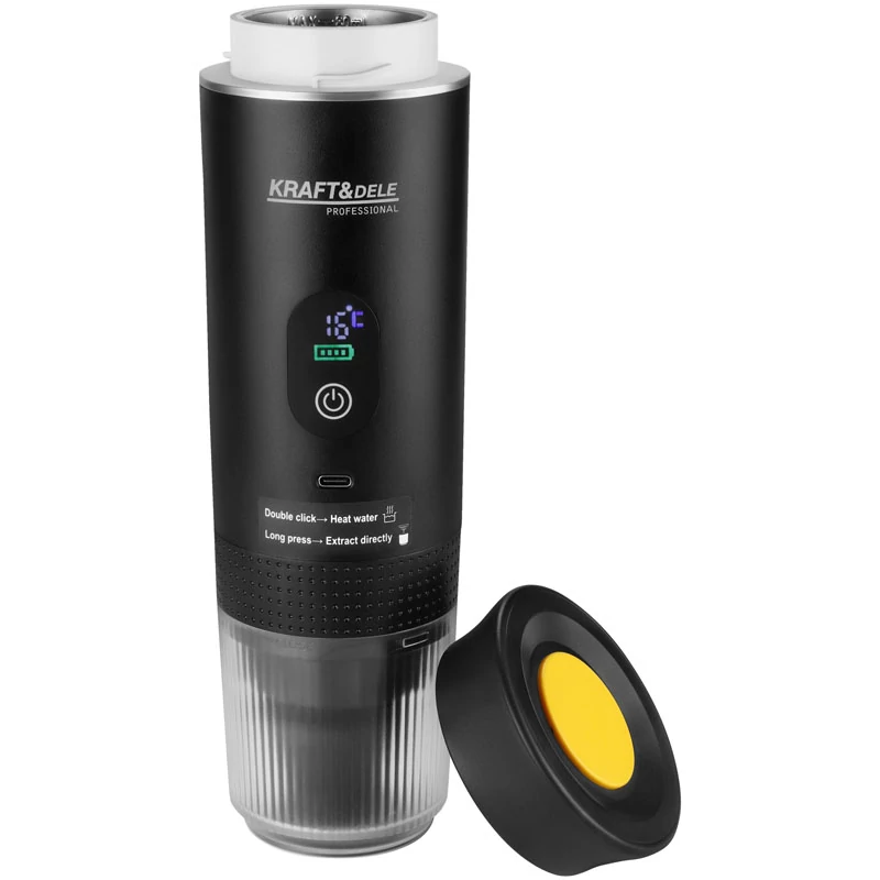 A Kraft&Dele KD4285 hordozható kávéfőző egy modern, kompakt eszköz, amely lehetővé teszi, hogy bárhol – otthon, irodában vagy utazás közben – friss kávét készíts. A 3 az 1-ben kompatibilitásnak köszönhetően használható őrölt kávéval, kapszulával és kávépárnával is, így rugalmas megoldást kínál a különböző kávéfogyasztási igényekhez.