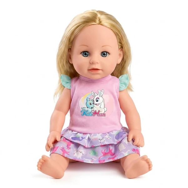 Ismerje meg a My Lucky Doll Little Cute Baby babát, amely a gondoskodó szerepjátékok világába vezeti be a gyermekeket. Ez a kedves arcú, szőke hajú baba nemcsak barát, hanem interaktív társ is: a mellkasát megnyomva 12 különböző hangot ad ki, beleértve a Mama, Papa, Hello és Bye Bye szavakat, valamint sírást és horkolást. A játékélményt fokozza az itatós funkció, amely után a baba valóban képes a bilire pisilni, így a kicsik játékos formában tanulhatják meg a napi rutin elemeit.