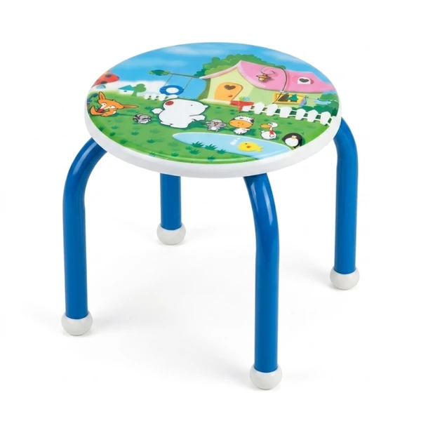 Ez a vidám és színes gyermek hokedli egy valóságos mesevilágot hoz el a gyerekszobába. Az ülőfelületet egy gazdagon illusztrált falusi jelenet díszíti amelyen egy barátságos fehér medve látható barátaival – köztük egy rókával pingvinnel kacsával és kiskutyával. A háttérben egy bájos kis házikó fehér kerítés és egy kerti hinta teszi teljessé a látványt amely azonnal beindítja a legkisebbek képzelőerejét.