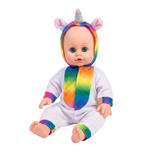 Ez a Dream Collection sorozatba tartozó interaktív játékbaba minden gyermeket elvarázsol varázslatos egyszarvú jelmezével. A szett nem csupán egy kedves alvótárs, hanem egy sokoldalú fejlesztő játék is, amely segít a gyerekeknek elmélyedni a gondoskodó szerepjátékokban. A baba élethű funkciókkal rendelkezik: lehunyja a szemét, ha lefektetik, beszél, és még az itatást követő bilihasználatra is megtanítható. A szivárványszínű részletekkel díszített, puha unikornisos rugdalózó különleges és modern megjelenést kölcsönöz az eszköznek.